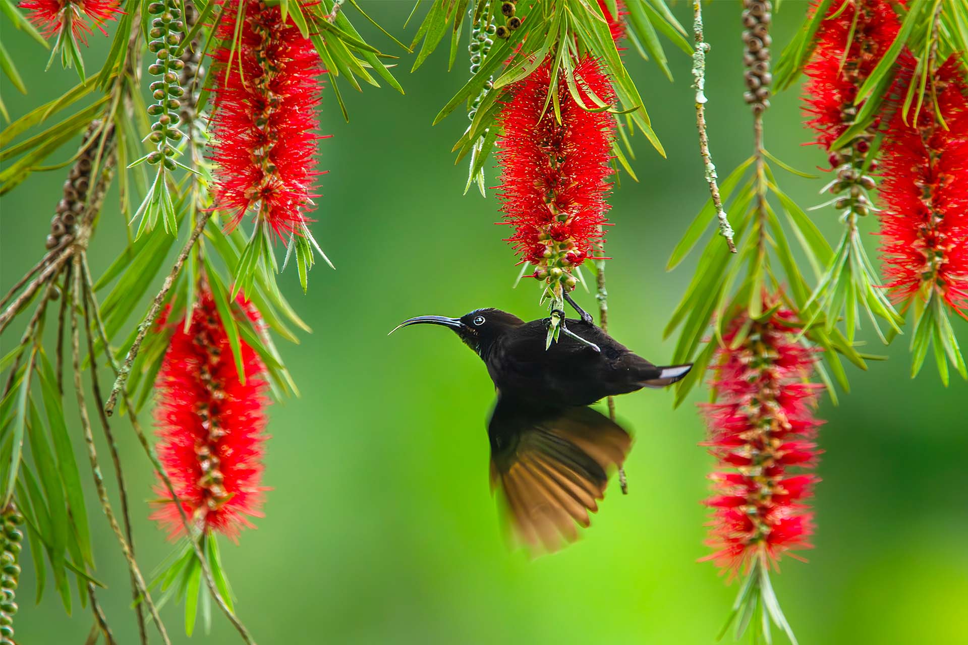 Amethisthoningzuiger tussen bloemen, Kilamanjaro Tanzania